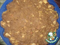 Добавить фрукты, перемешать ложкой. Выкладываем получившуюся массу в форму. |