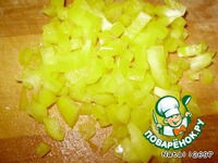 Болгарский перец очистить от плодоножки, семян и прожилок, нарезать небольшим кубиком. |
