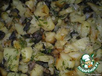Грибы (можно брать любые) обжарить на растительном масле с луком и чесноком,посолить,поперчить,на другой сковороде обжарить тонко нарезаное сало,(по желанию можно еще добавить лук обжариваться),добавить почищеную и порезаную картошку, добавить грибы, и обжарить до готовности,посолить,поперчить,добавить порезаную зелень. Приятного аппетита! |