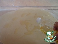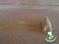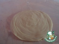 Свернутое в трубочку тесто, перевернуть и раскатать по диаметру сковороды. |