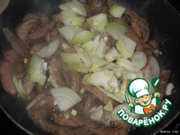 Печень нарезать также соломкой. Обжарить на растительном масле 2 минуты. |
