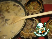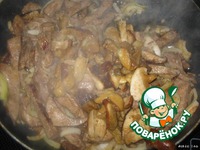 Сверху печень с грибами. Заливаем всё жидкостью. |