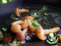 Грибы порезать пластинками (у меня опята, поэтому целиком). Порубить мелко чеснок и лук. |