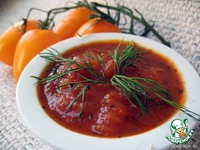 Измельчить в блендере обесшкуренные консервированные томаты с чесноком, Табаско и зеленья. Нагреть сотейник, довести томатный соус до кипения, помешивая, и кипятить минуту. |