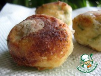 Разогреть фритюр, шары запанировать в муке и обжарить до золотистого цвета. Вынуть и положить на салфетку для впитывания лишнего жира. |