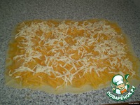Сворачиваем всё в рулет, если тесто немного порвалось, ничего страшного. |