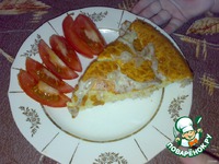 Я открыла баночку соленых помидоров,которые продаются,к сожалению лишь в российском магазине.Но с ними пирог был просто восхитительным!Надеюсь он и вам понравится :-) |