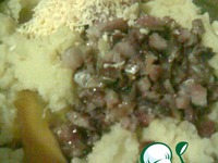 Смешать пюре, сельдь, яйцо, муку и тертый сыр. Добавить соль и перец по вкусу |