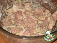 Свинину нарезать кубиками (не слишком мелко). |