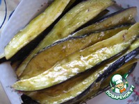 Обмазать маринадом, оставить на 15-20 мин; разогреть духовку до 200-220 °C; выложить баклажаны в огнеупорное блюдо и запекать, периодически переворачивая около 30-40 мин. |