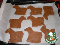 Нагреть духовку до 175*C. Тесто раскатать на посыпанном мукой столе и вырезать с помощью шаблона барашков (я нарисовала произвольный шаблон и вырезала). |