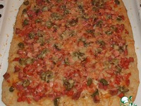 Не теряем времени даром и готовим начинку. Она может быть практически любой. Самый стандартный вариант: лук, перец, колбаска, помидорки (я обычно удаляю жидкую часть), сыр. Иногда хочется солененького и можно добавить соленые огурчики и оливки. Я нарезаю все мелкими кубиками, дочка не любит лук и помидоры, вот и шифруемся. Хотя лук и перчик надо бы резать колечками, а помидорки кружочками. В итоге на подготовку всего этого богатства уходит необходимые для теста 30 минут.