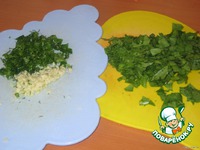 Щавель нарезать, петрушку, укроп и чеснок измельчить. |