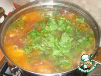 Когда борщ с зажаркой прокипит, добавляем щавель, яйца, зелень и чеснок - даем закипеть и выключаем. |