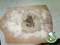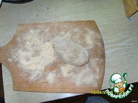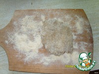 На доске раскатываем фарш, пересыпая его панировочными сухарями |