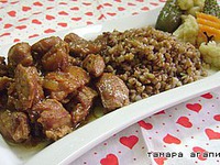 | На гарнир любые овощи, каши.У меня была гречка и маринованные овощи |
