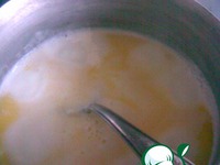 добавить тонкой струйкой манку и мешать, пока каша не начнет отставать от дна посуды |