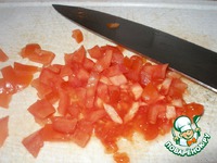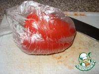 На помидорах сделать небольшие надрезы и опустить их в кипящую воду на 1 минуту. Потом обдать их холодной водой и снять тонкую шкурку. Помидоры измельчить. |