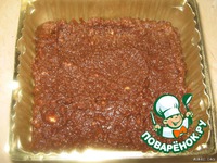 В шоколадную массу добавляем печенье. Масса должна быть не очень густой, она как бы легко падает с ложки, но не стекает. |