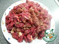 Мясо режем на тонкие полосочки |