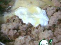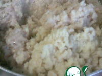 Смешать поджарку с картофельной массой,добавить яйца и сметану(буквально 4-5 ст.л.).Добавить специи и хорошенько вымешать. |