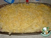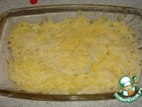 Сверху сново слой тертой картошечки, чуть майонеза и сыром посыпать; и в духовку на 40-50 мин.. |