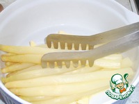 Спаржу очистить, вымыть и положить в кипящую воду, варить 20-25 минут |