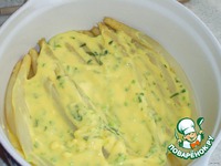 Сверху выливаем соус и посыпаем маленьким количеством тертого сыра. Запекаем в духовке 15 минут при 220 С |