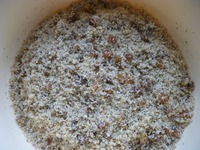 Из перечисленных продуктов приготовить тесто и, пока оно подходит, займемся начинкой. |