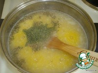 В середине варки в кашу добавляем орегано и сушеный лук.