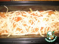 Заливаем смесью из овощей, перчим красным перцем совсем немного и посыпаем тертым сыром |