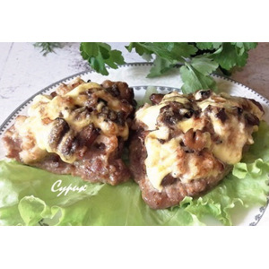 Филе свинины режем на кусочки толщиной 05 см, отбиваем, обжариваем на сухой сковороде на каждой стороне по 3 минуты. Подготовленные таким образом отбивные выкладываем на противень. На отбивные кладем начинку, равномерно распределяя, поливаем сверху майонезом и в горячую духовку, запекаем 20 -30 минут при температуре 250 градусов. Обалденно вкусно!