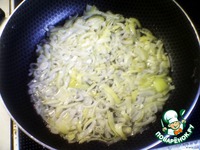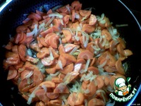 Лук порезать и обжарить до золотистой корочки, добавить порезанную кусочками морковь и обжаривать минут десять.