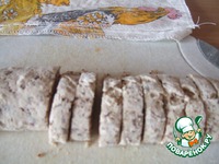 Теперь нарезаем наши колбаски аккуратненько на кусочки толщиной 1-1,5 см. Можно нарезать немного наикосок, тогда ломтики будут побольше |