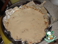 Половину теста вылить на смазанный сливочным маслом противень. |