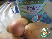Картофель и лук очистим, нарежем: картофель - вдоль на 4 части; лук - полукольцами. |