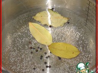 Воду (немного, вода должна чуть покрывать рыбу в итоге при варке) вскипятить, посолить, добавить перец и лаврушку |