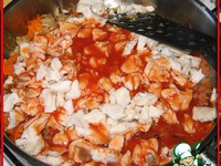 Соединяем овощи, рыбу и томат. пробуем на соль и кислоту. добавляем, чего не хватает. тушим еще минут 15. кушаем обычно холодным. |