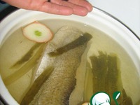 Рыбу отвариваем. Я добавила кожицу от огурца, луковицу, перец душистый, гвоздику, перец горошек, соль. |