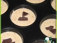 Разливаем тесто по формочкам, украшаем кусочками темного шоколада |