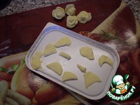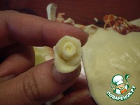 Нарезала готовые кусочки и дала им полежать пару минут. Не очень удобно лепить. Что я напортачила видно с мастикой. |