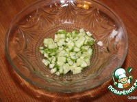 Итак, приступим. Нарежем огурец мелкими кубиками. Отправляем в салатник. |