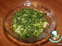 Берем пучок зелени, отрезаем стебли, откладываем в сторону(пригодятся для овощного бульона) и мелко нарезаем. В салатник. |