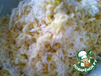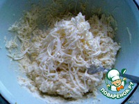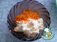 Оставляем одну десертную ложку смеси, ни с чем не замешанную (чистую). Трём на мелкoй тёркe морковку и с оставшейся смесью смешиваем. |