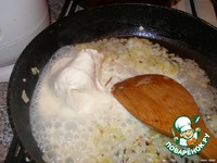 Для соуса очень мелко режем репчатый лук и обжариваем его на растительном масле 1-2 минуты. |