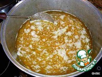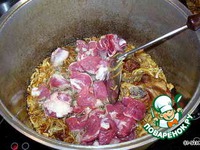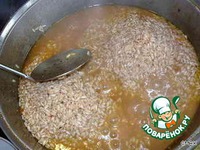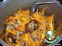 Внимание, это очень важно! По мере убывания (впитывания) зирвака, необходимо последовательно убавлять температуру под котелком, чтобы избежать пригорания овощей и мяса. Делать это следует аккуратно, чтобы, с одной стороны, полностью не "заглушить" процесс впитывания рисом зирвака, с другой - не допустить пригорания. Словом, необходимо будет выбрать некую золотую температурную "серединку".