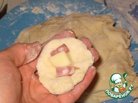 Тесто наполовину заварное, с добавлением творога и картофельного пюре. Структура теста довольная плотная, но нежная, начинка из моцареллы и копченой колбаски добавляет пикантности. Можно без начинки, а можно и с фруктами сделать, будет десертный вариант.