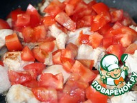 Обжарить на растительном масле нарезанный полукольцами лук и нарезанный пластинками чеснок, 2мин. |
