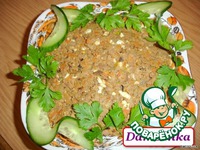 Натертую печень, морковь, лук и яйцо перемешать. Посолить, поперчить, добавить чеснок по вкусу. Все хорошо перемешать. НЕ заправлять. Приятного аппетита. |