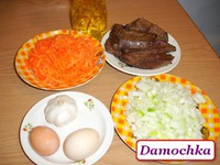 Печень очистить, помыть, нарезать небольшими полосками (чтобы было удобно жарить и хорошо прожарилась). Морковь почистить, натереть на крупной терке. Лук почистить и порезать кубиками. |